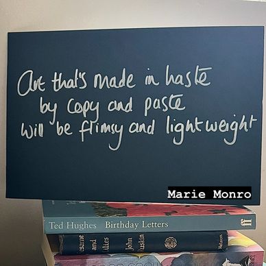 Marie’s poetic expression comes in various forms, including a self published book, asemic writing, spoken word poetry, text boards and greetings cards.
